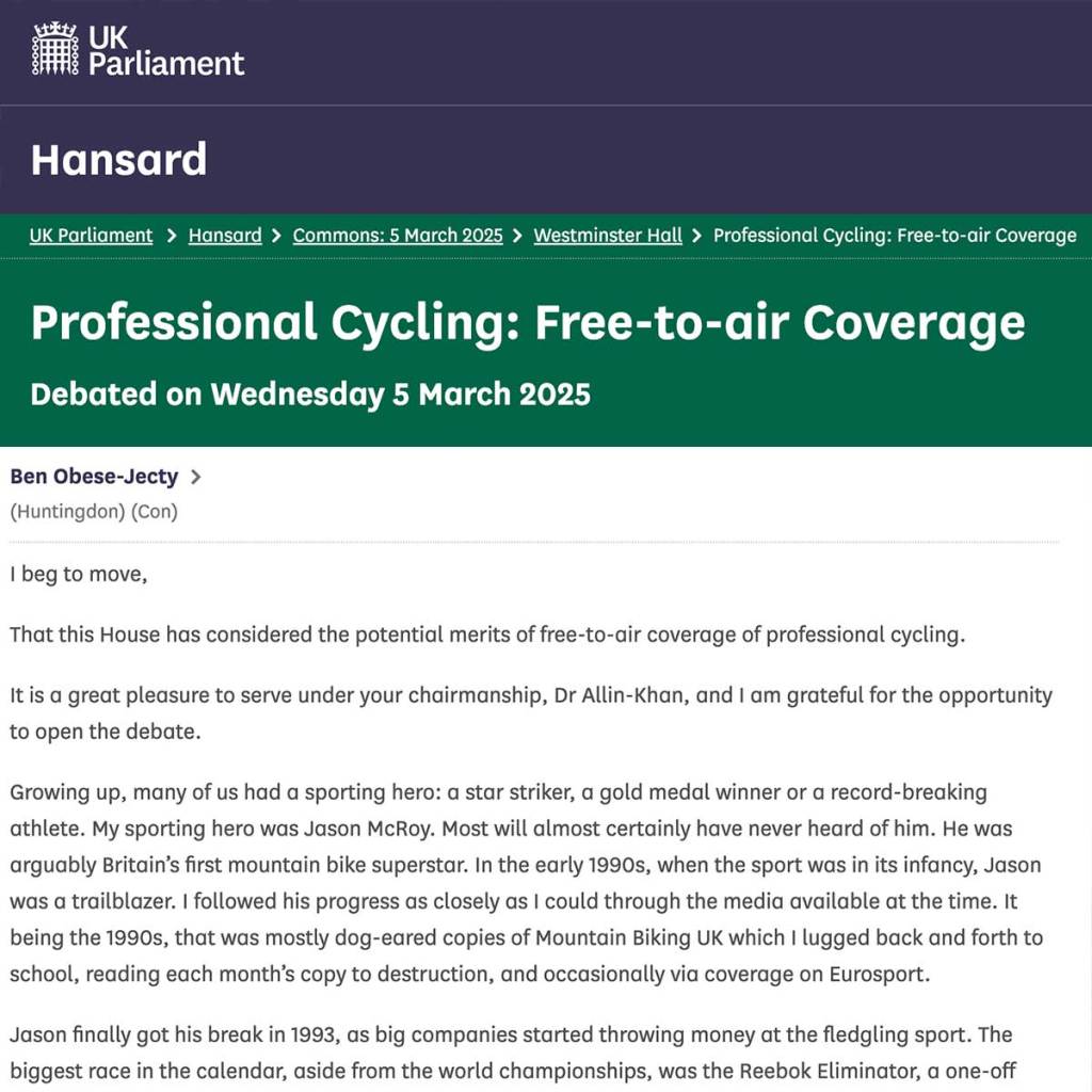 Free-to-view MTB coverage debated in UK parliament